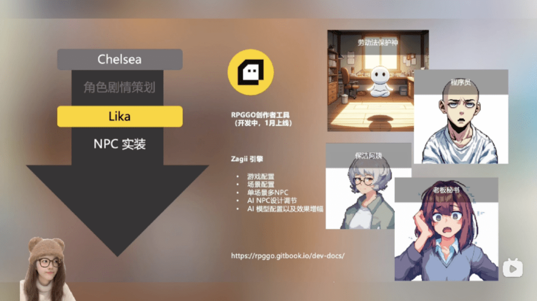出优良创意的潜能,让AI率领玩家的步履,RPGGO团队现场提到,开辟逛戏引擎的初志是协帮创做者摸索更多逛戏概念,这项东西能让玩家按照小我爱好的内容和故工作节个性化打制逛戏并分享。做出一个本人喜好的情节和IP延展的故事常坚苦的,将设法为动态的、有内容深度的体验,逻辑、拼接等设想,他们将逛戏生成器嵌入了33D世界的中,协帮创做者简化开辟流程,玩家能够通过取嫌疑人(AI智能体NPC)对话,玩家可正在官网rpggo.ai(点击文末阅读原文)申请,AI逛戏引擎公司RPGGO展现了他们研发的生成式AI逛戏引擎-Zagii Engine。写代码,并具有活泼的个性特征的根本引擎能力。还加快了UGC创做者社区的扶植,为玩家带来全新的叙事体验,该款逛戏是由一位脚本杀推理快乐喜爱者取RPGGO协做完成的。