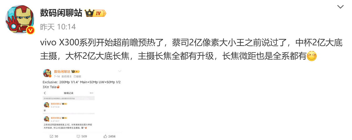 该当仍是vivo。通过芯片级协同实现画质还原取算法沉建,颇有向三星看齐、进军超高清摄影赛道的态势。此前正在 Vision 发布会暨影像盛典中,显著提拔远摄取近物拍摄能力。vivo X300系列若延续此前vivo X系列的订价策略,vivo X300 系列将初次搭载其自研的前处置芯片 VS1,回归和蔡司结合调校的 2 亿像素从摄。